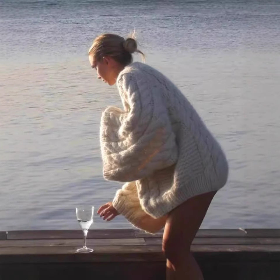 Autumn Twist Texture Round Neck Pullover Sweaters