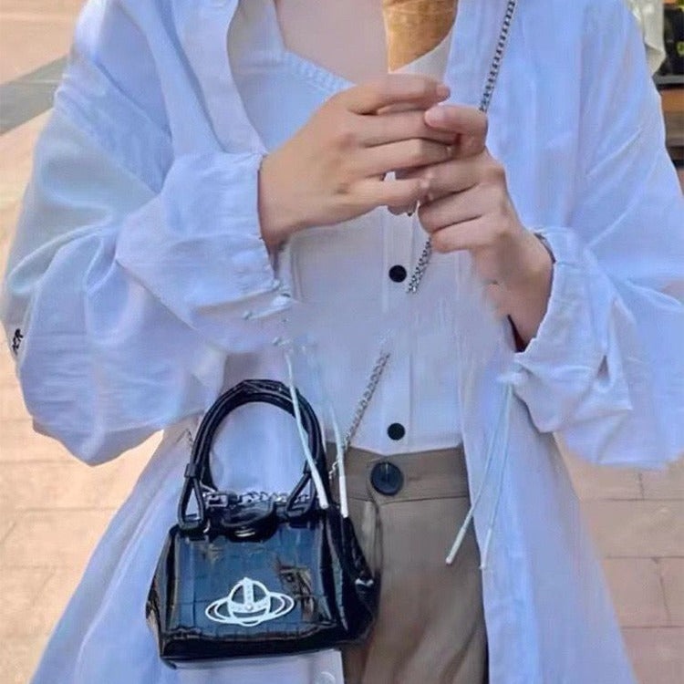 Chain Saturn Mini Retro Crocodile Pattern Crossbody Bags