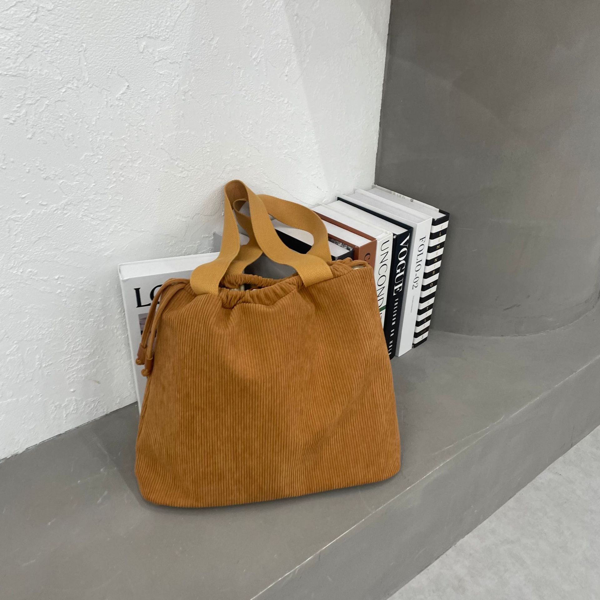 Corduroy Solid Color Simple Large Capacity Shoulder Bags