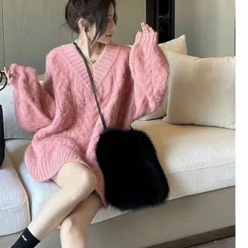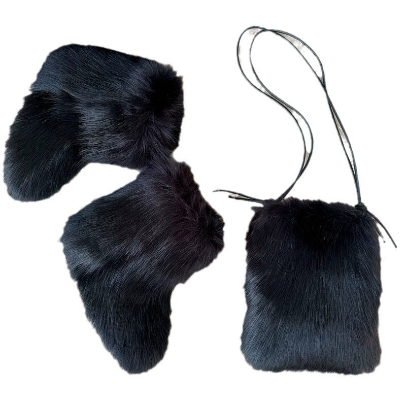 Elegant Innovative Plush Mobile Furry Strap Crossbody Bags