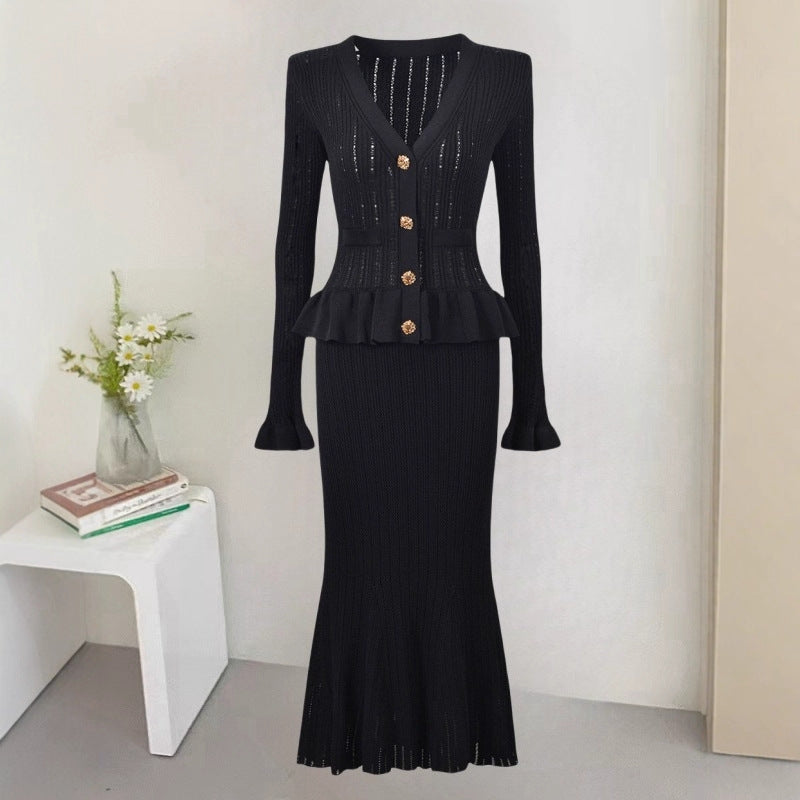 Knitted Dress Long Sleeve Fishtail Fashion Buttons Dresses