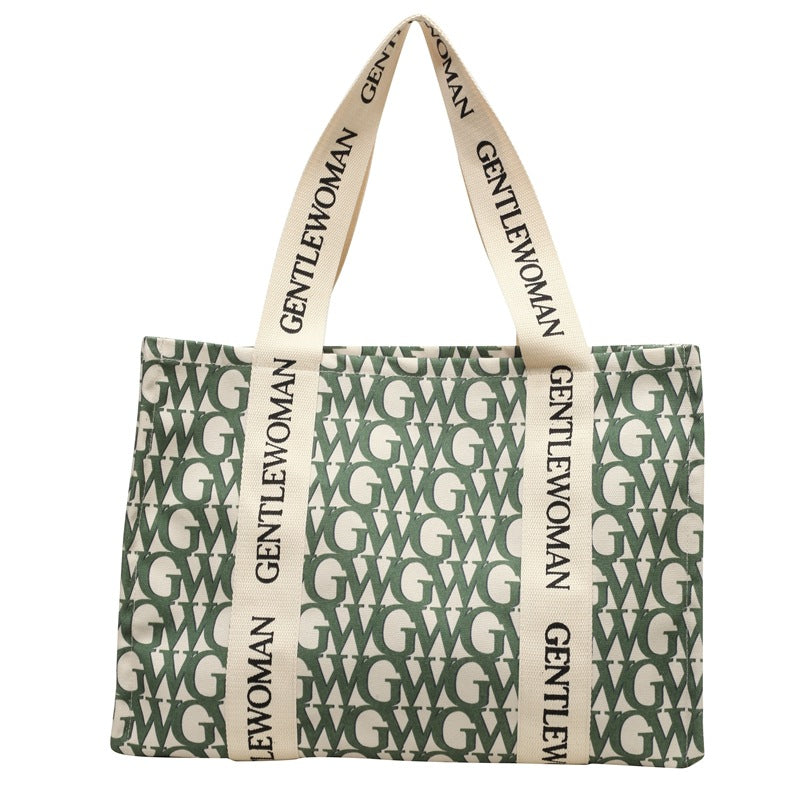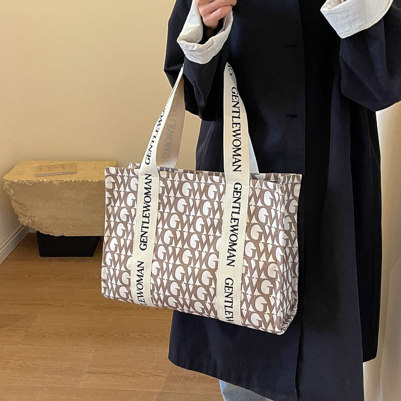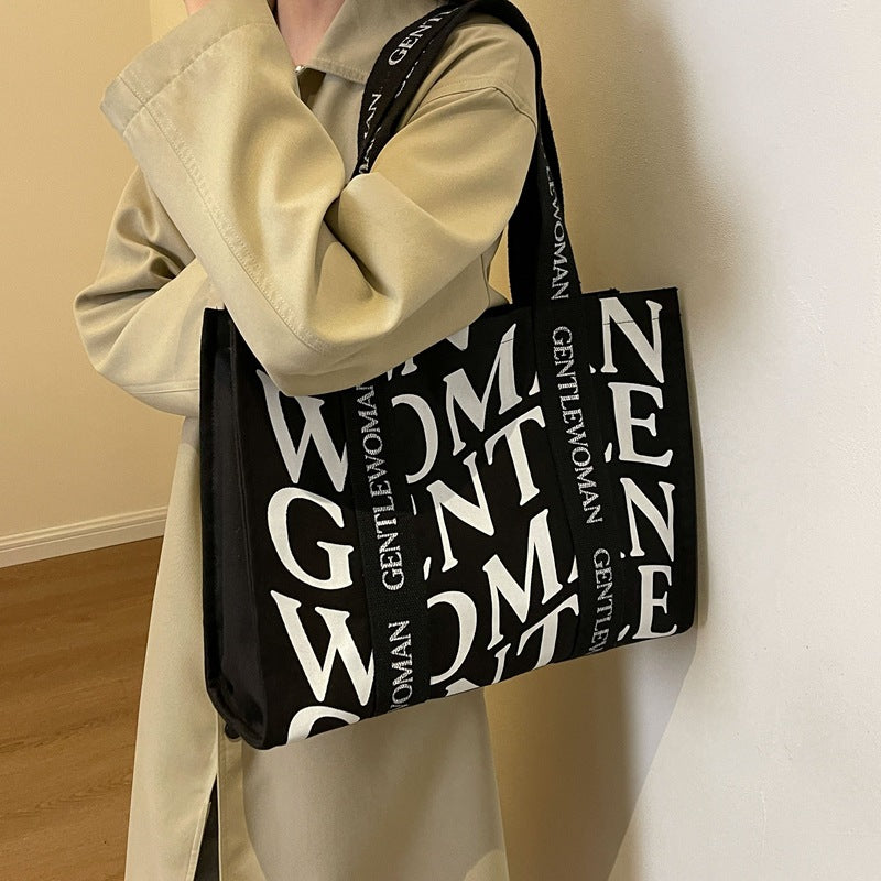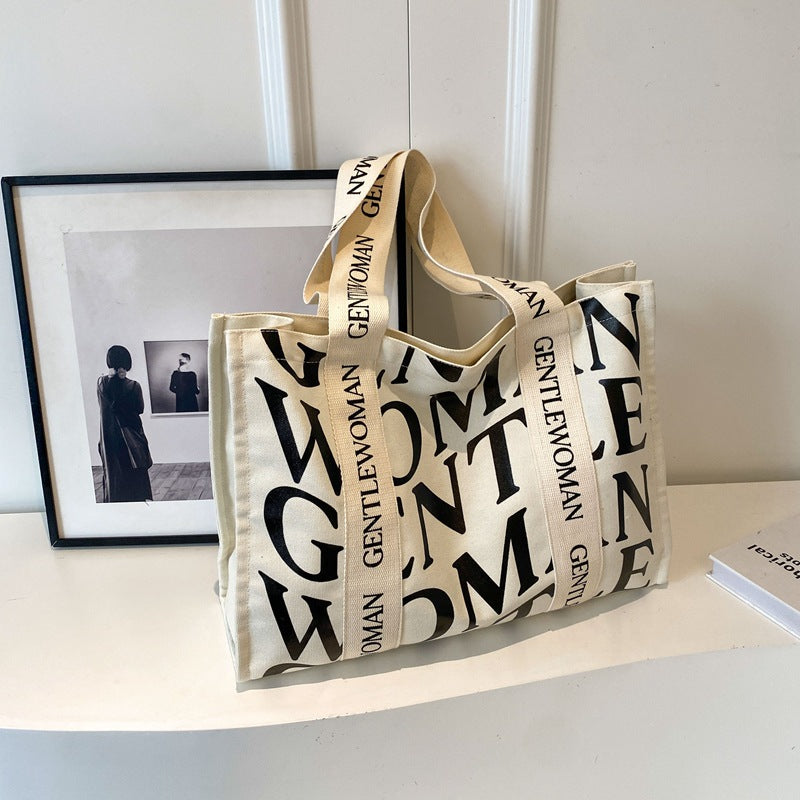 Large Capacity Letter Canvas Texture Wide Shoulder Bags
