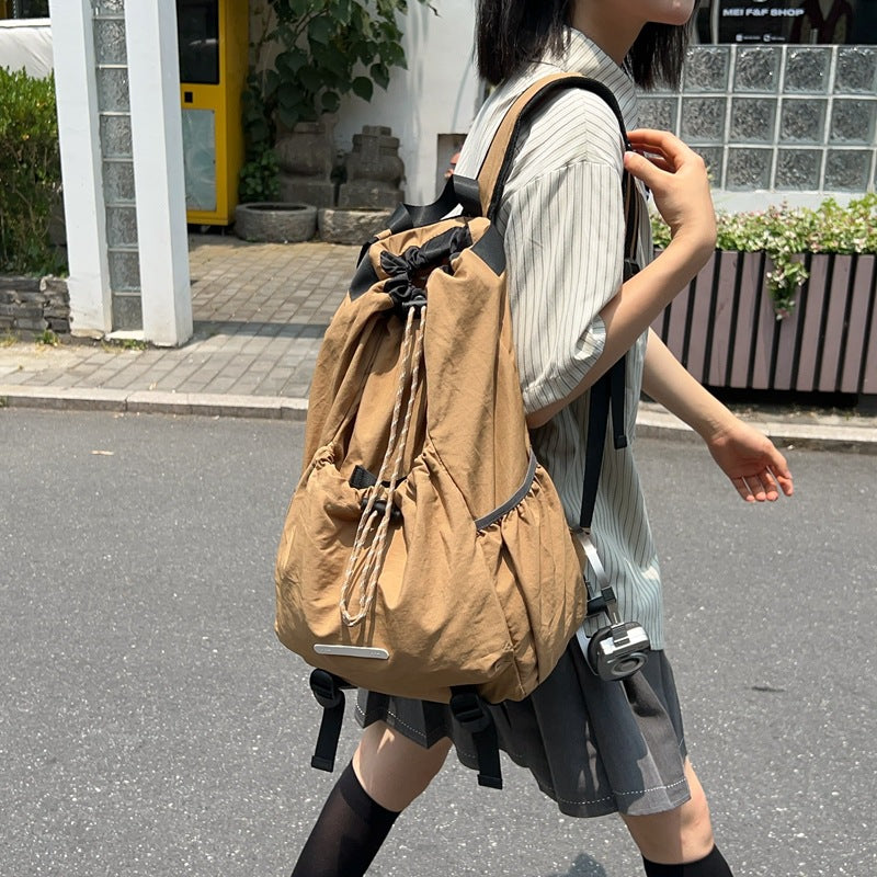 Men's Drawstring Pull String Nylon College Trip Backpacks