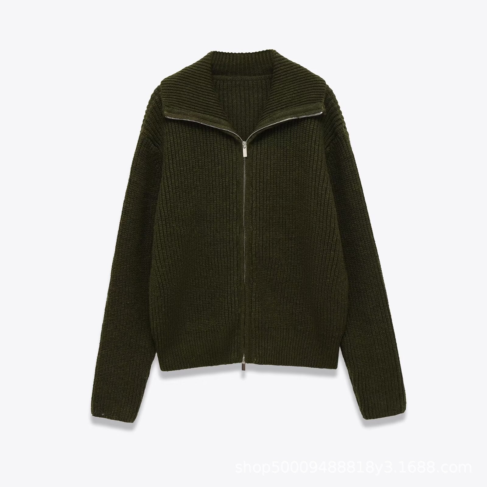 Pretty Double Zipper Lapel Casual Slimming Knitwear
