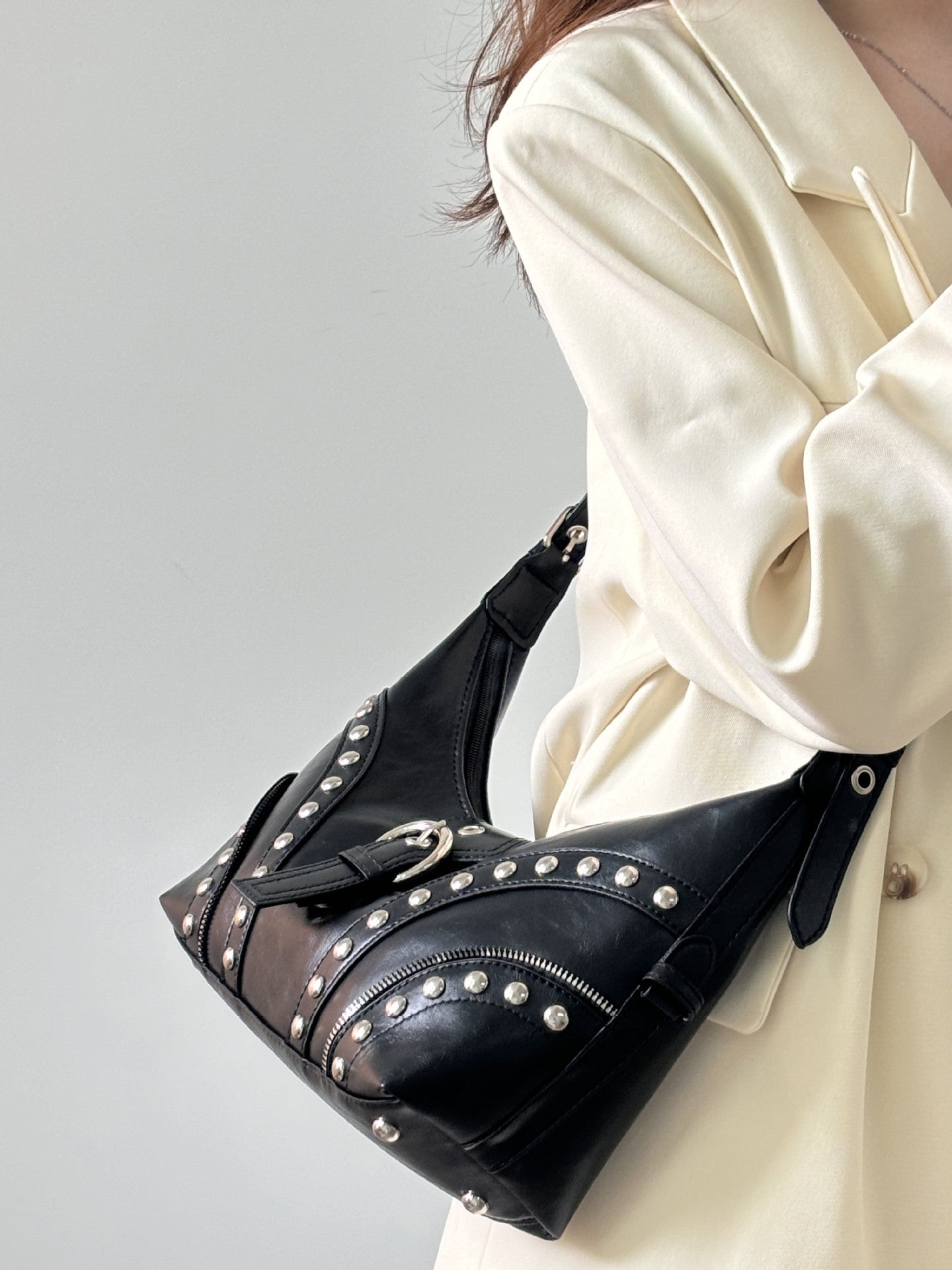 Wax Leather Croissant Rivet Motorcycle High-grade Crossbody Bags