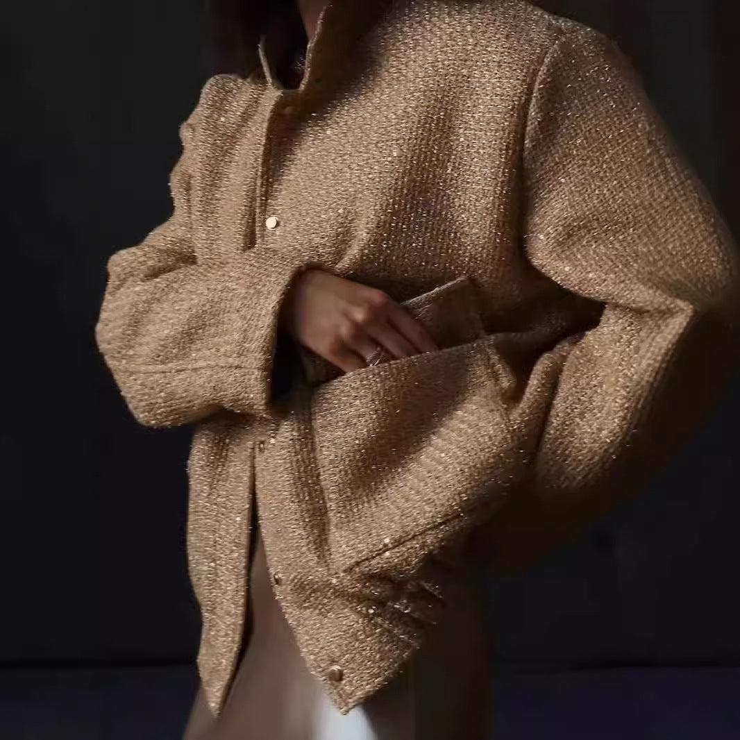 Women's Beads Decoration Small Stand-up Collar Jackets