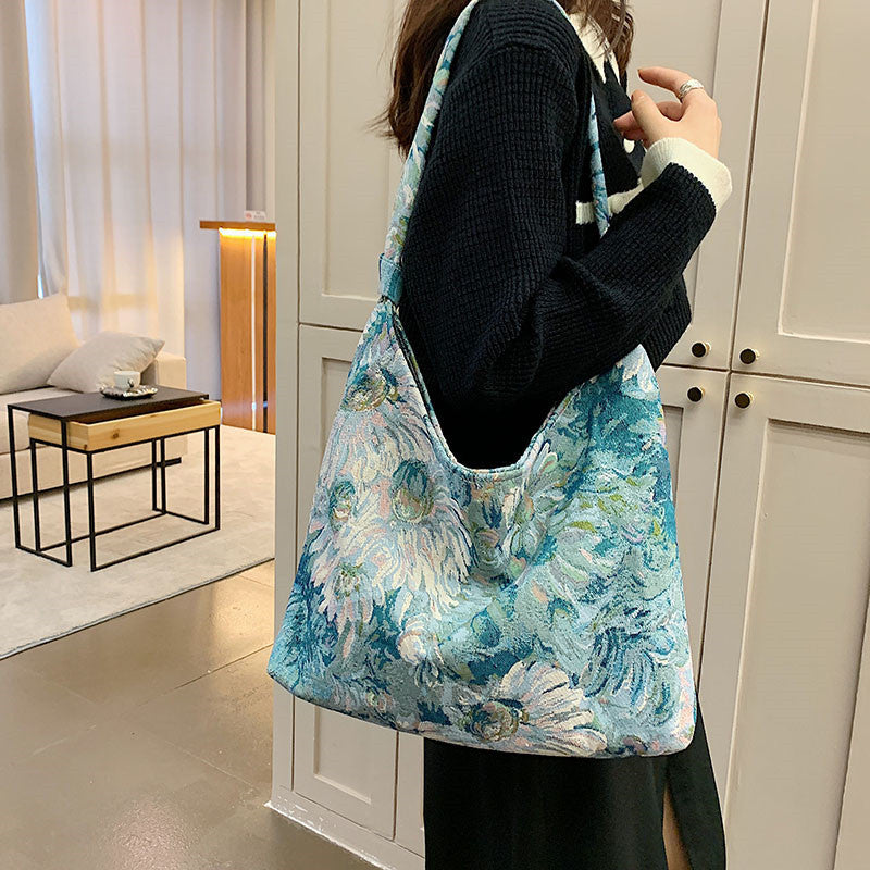 Women's Capacity French Simplicity Canvas Oil Painting Shoulder Bags