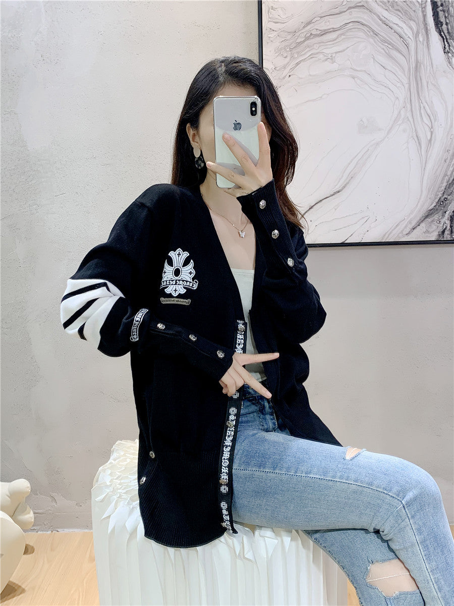 Women's College Style Four Bars Cross Fashion Knitwear