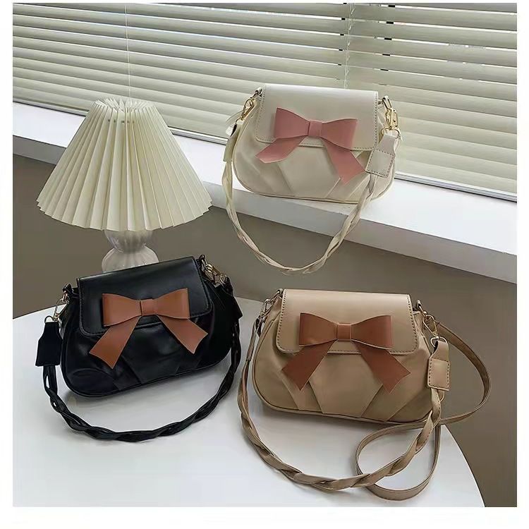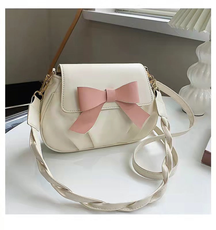 Women's Contrast Color Bow Pleated Fresh Western Shoulder Bags