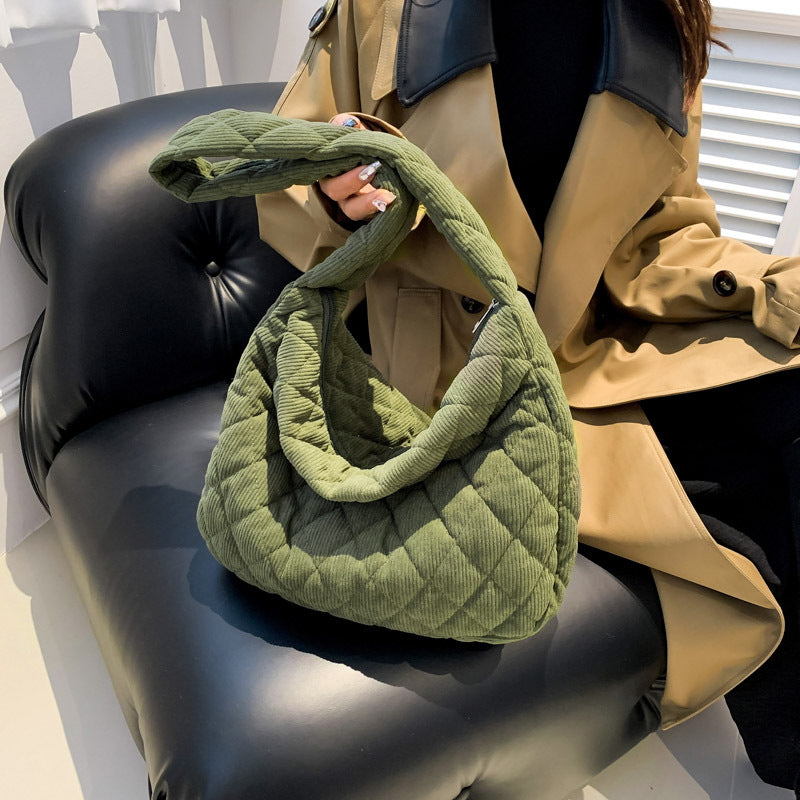 Women's Cotton Corduroy Blue Korean Style Large Crossbody Bags