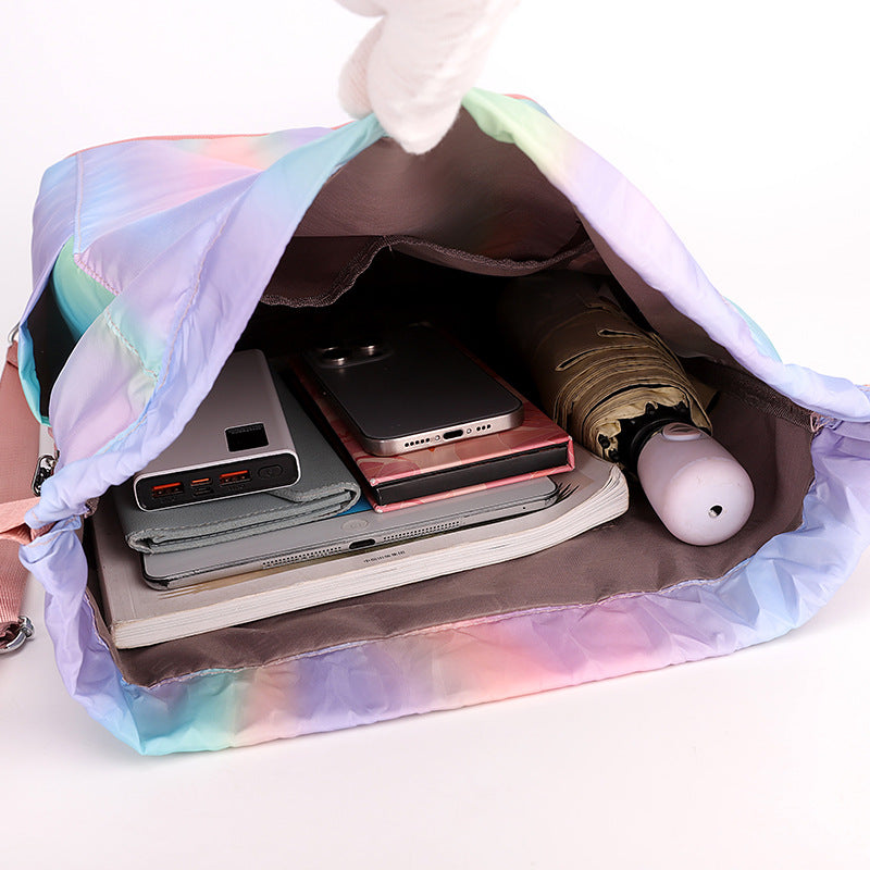 Women's Drawstring Lightweight Folding Storage Gradient Color Sports Backpacks