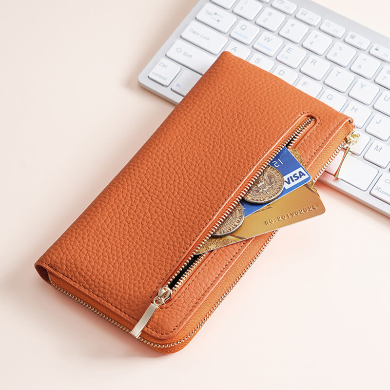 Women's Genuine Leather Long Swiping Cowhide Multiple Purses