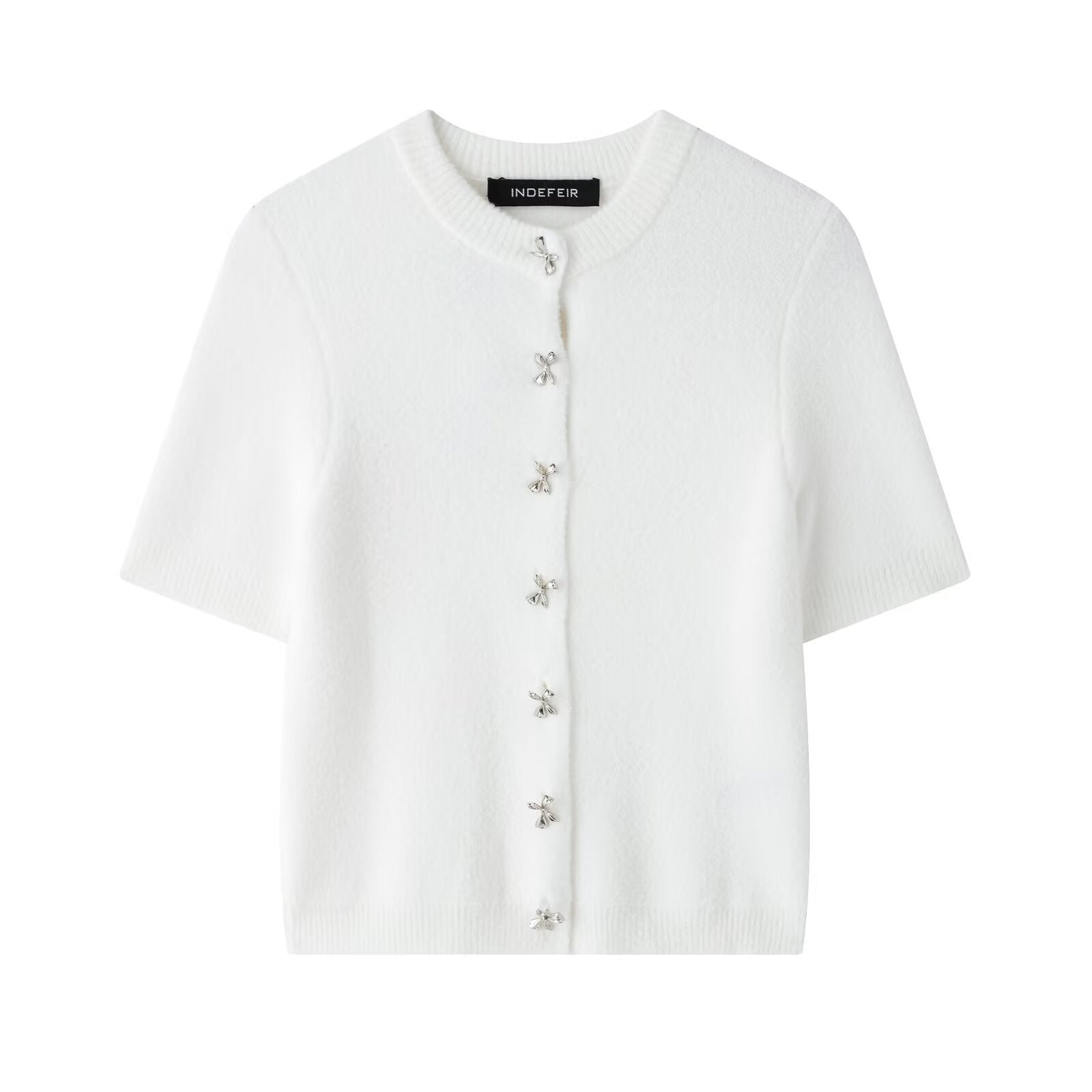 Women's Homemade Classic Bow Decorated Row Button Knitwear