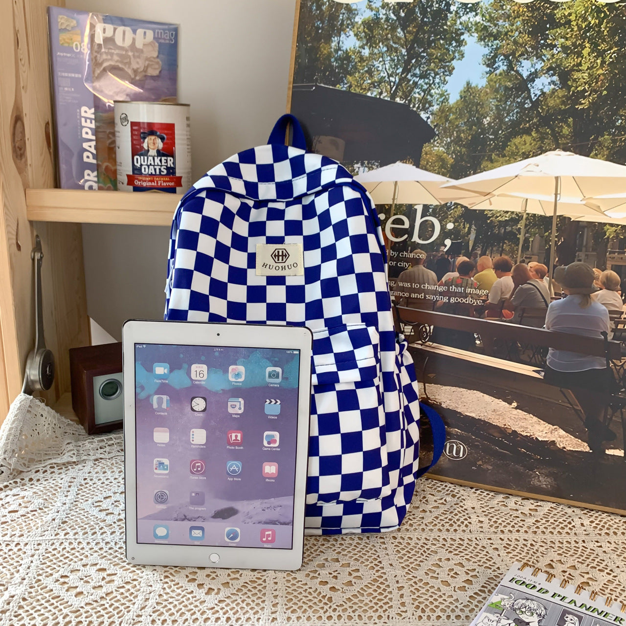 Women's Korean Fashion Chessboard Plaid College Junior Backpacks