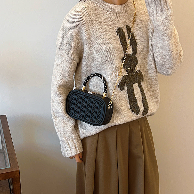 Women's Korean Hemp Pattern Box Textured Shaped Crossbody Bags