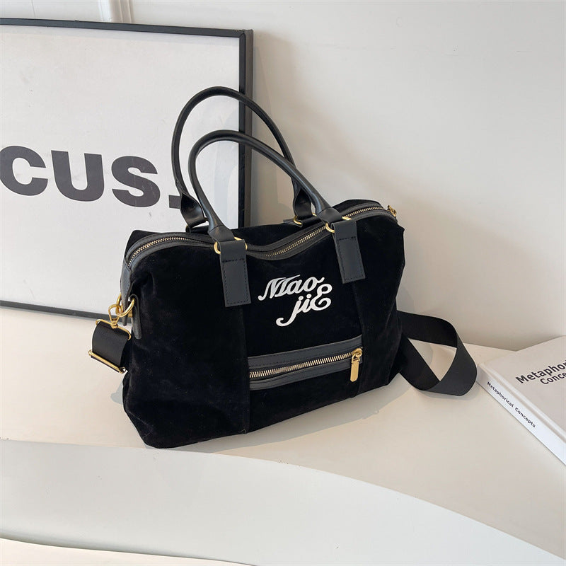 Women's Large Capacity Leather Flannel Trendy Retro Shoulder Bags