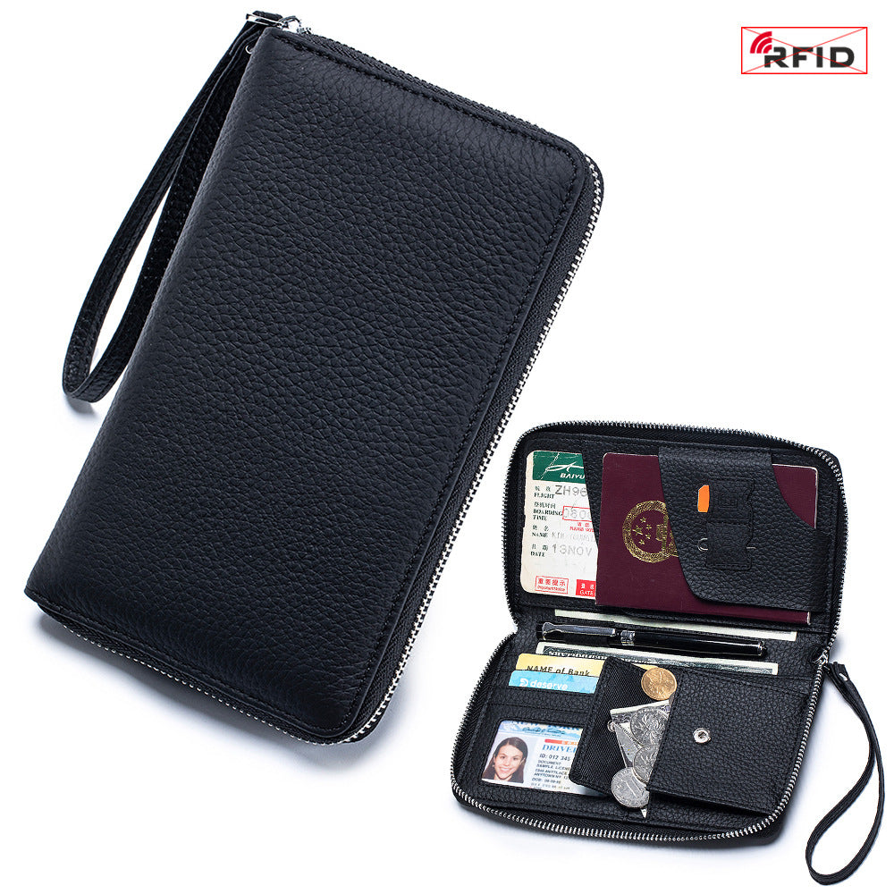 Women's Large Capacity Long Genuine Leather Ticket Bags