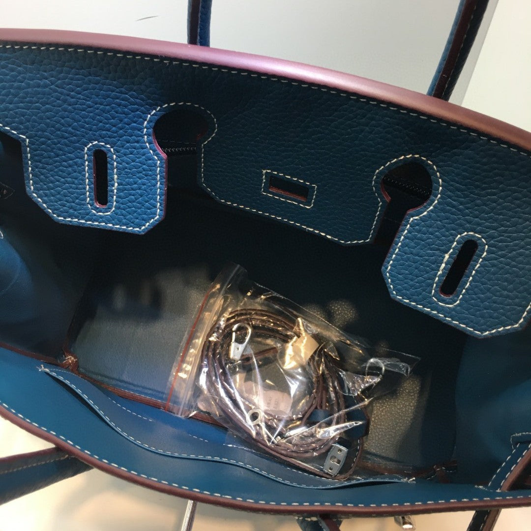 Women's Layer Cowhide Lychee Pattern Leather Kelly Large Handbags