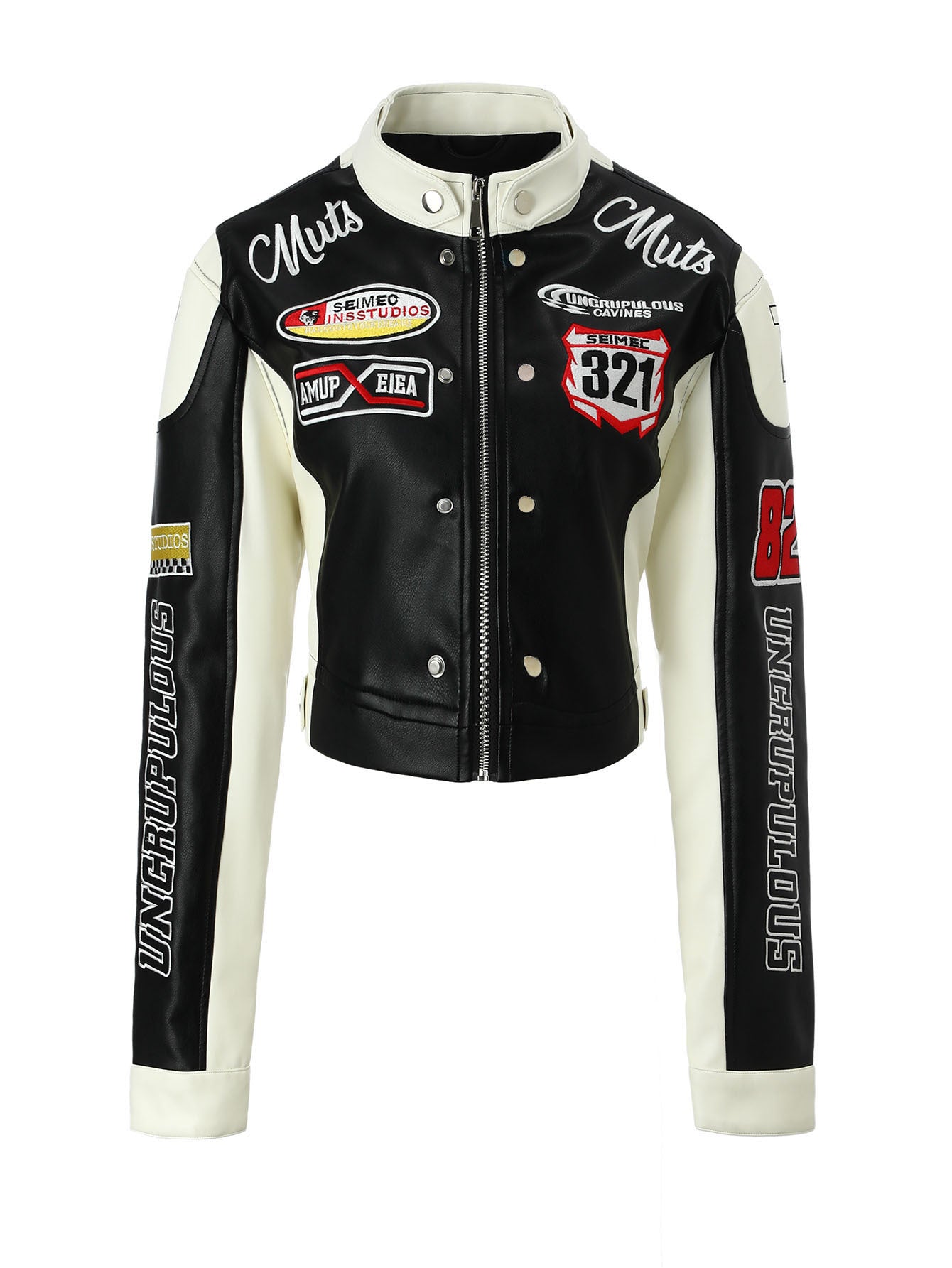 Women's Leather Stand Collar Color Contrast Patchwork Imitation Racing Jackets
