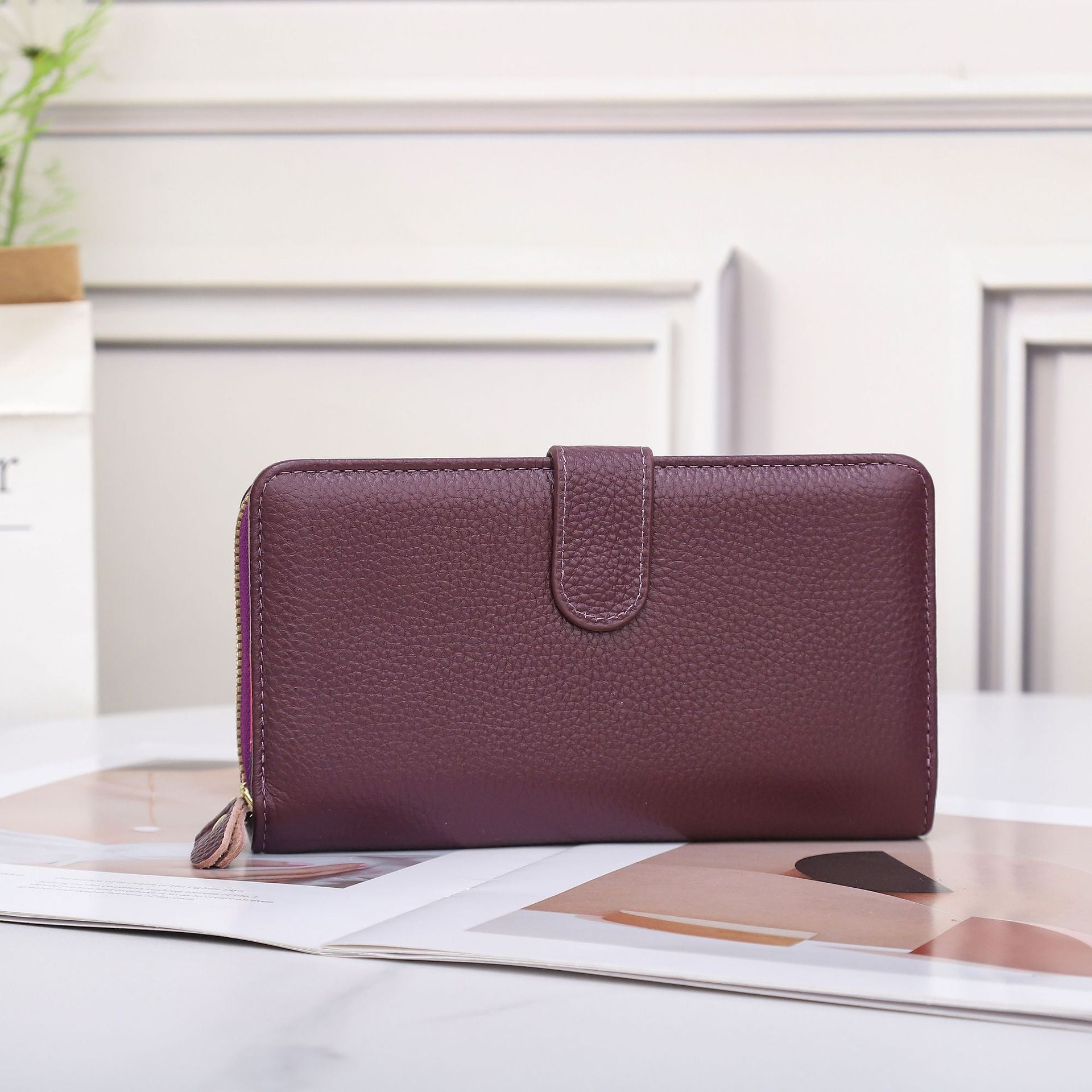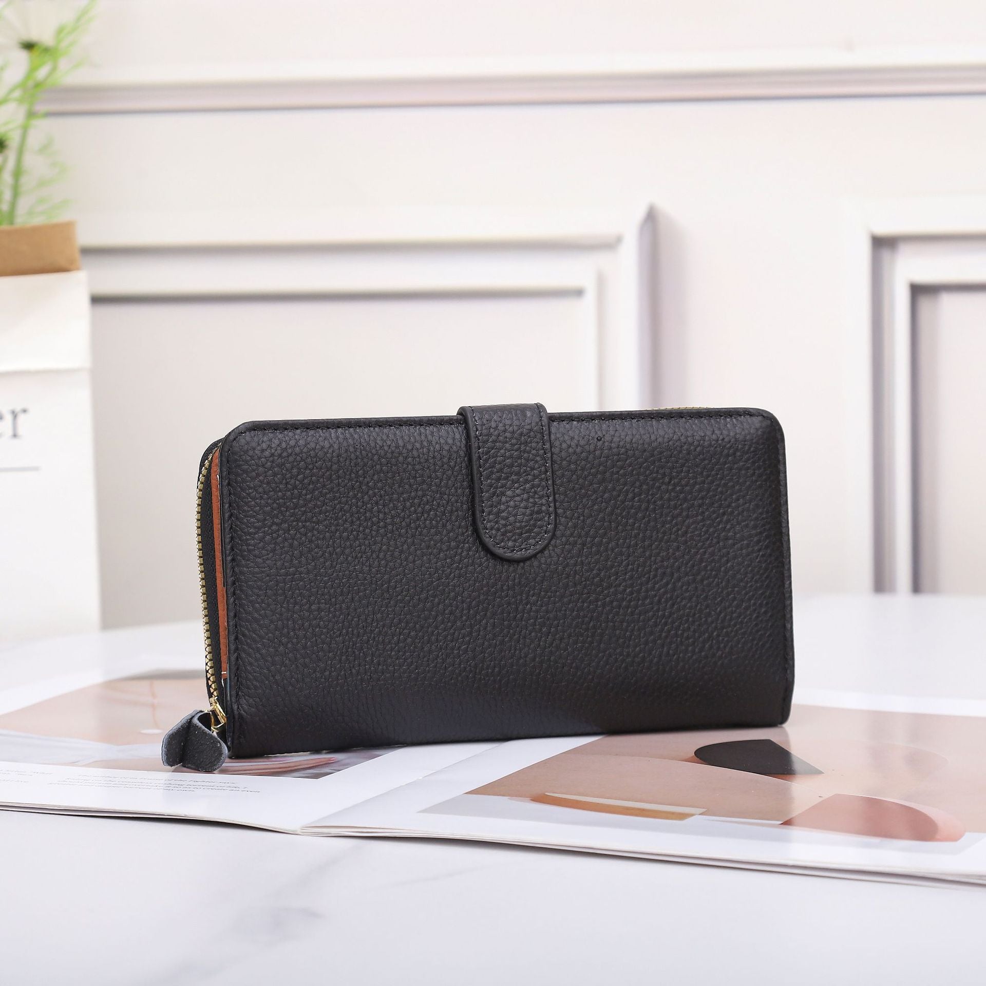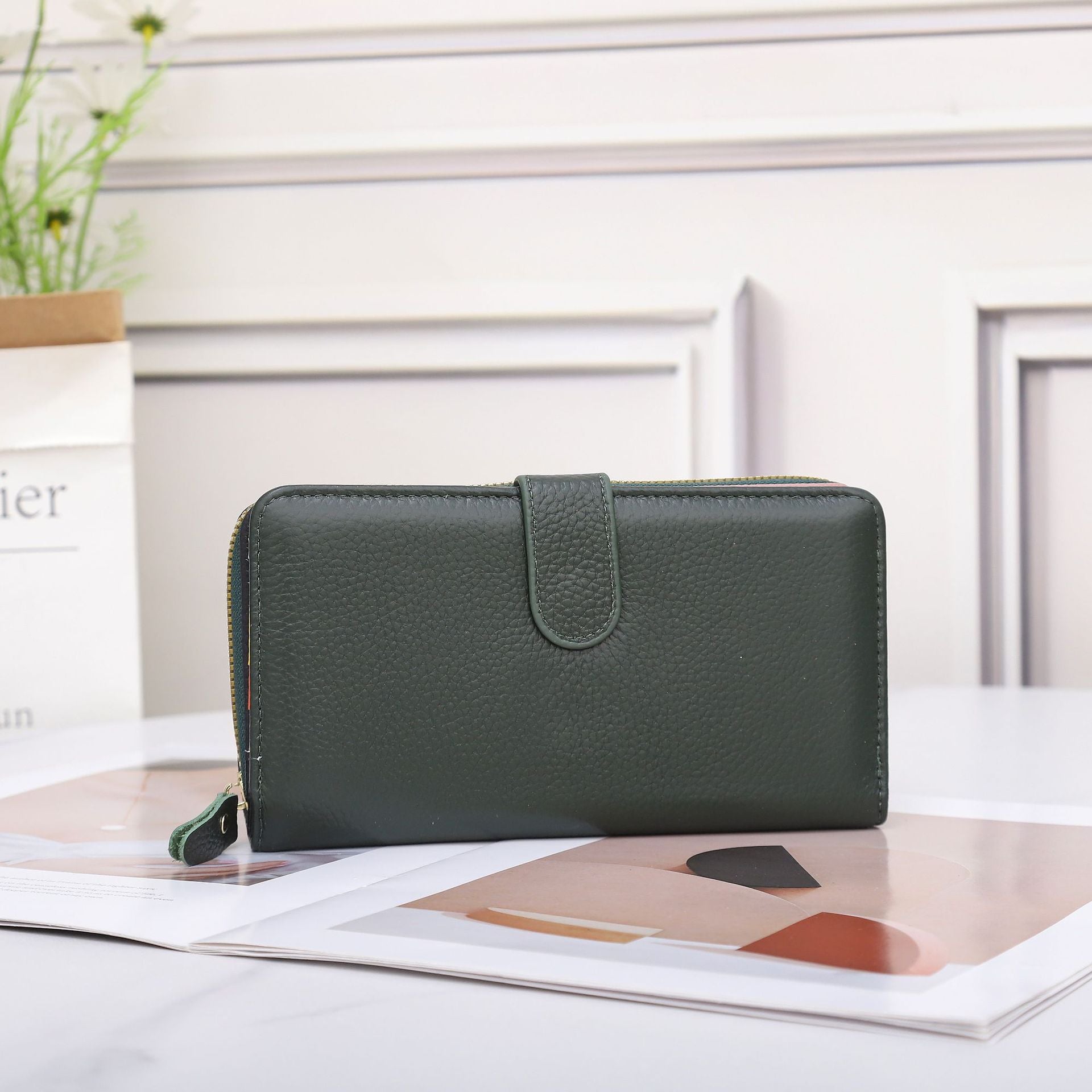 Women's Long Leather First Layer Cowhide Large Ladies Wallets