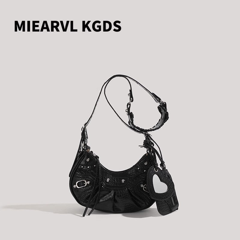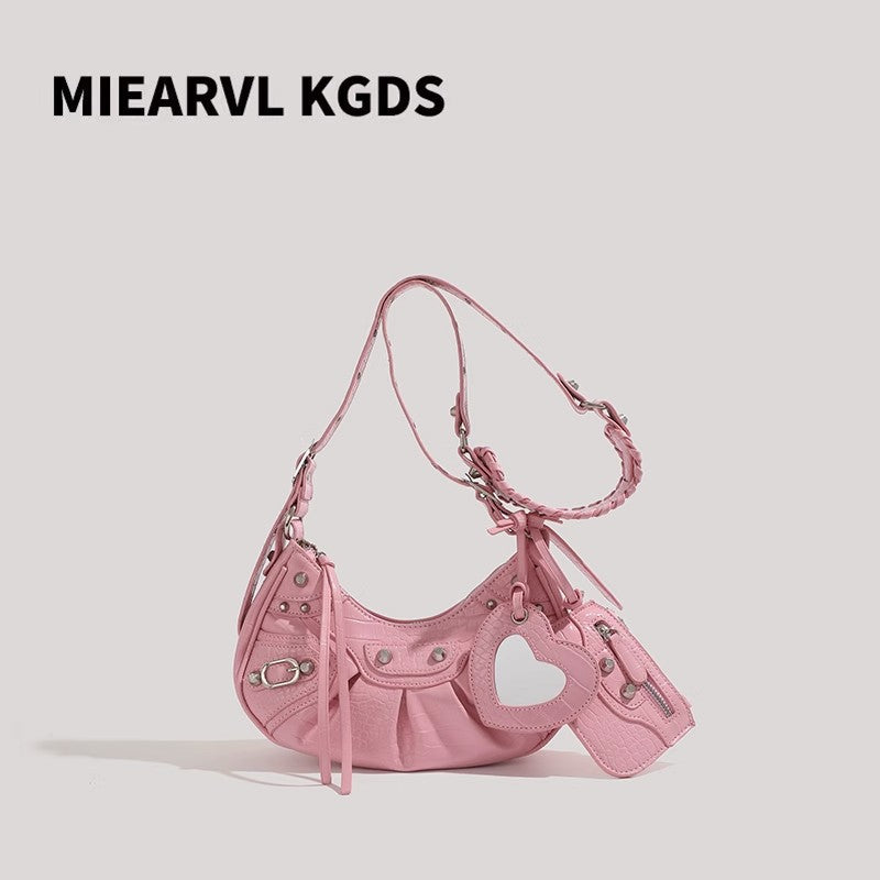 Women's Motorcycle Underarm Leather Folds Selenodont Rivet Shoulder Bags