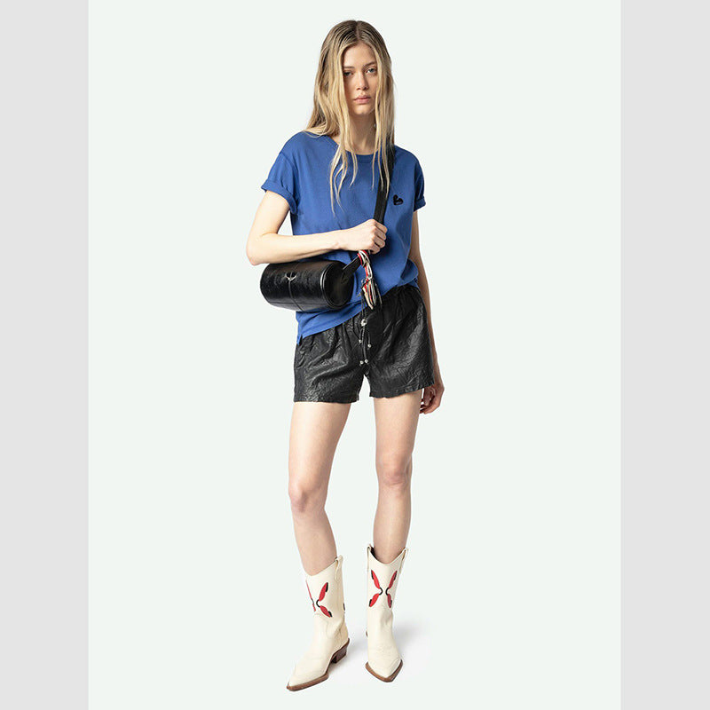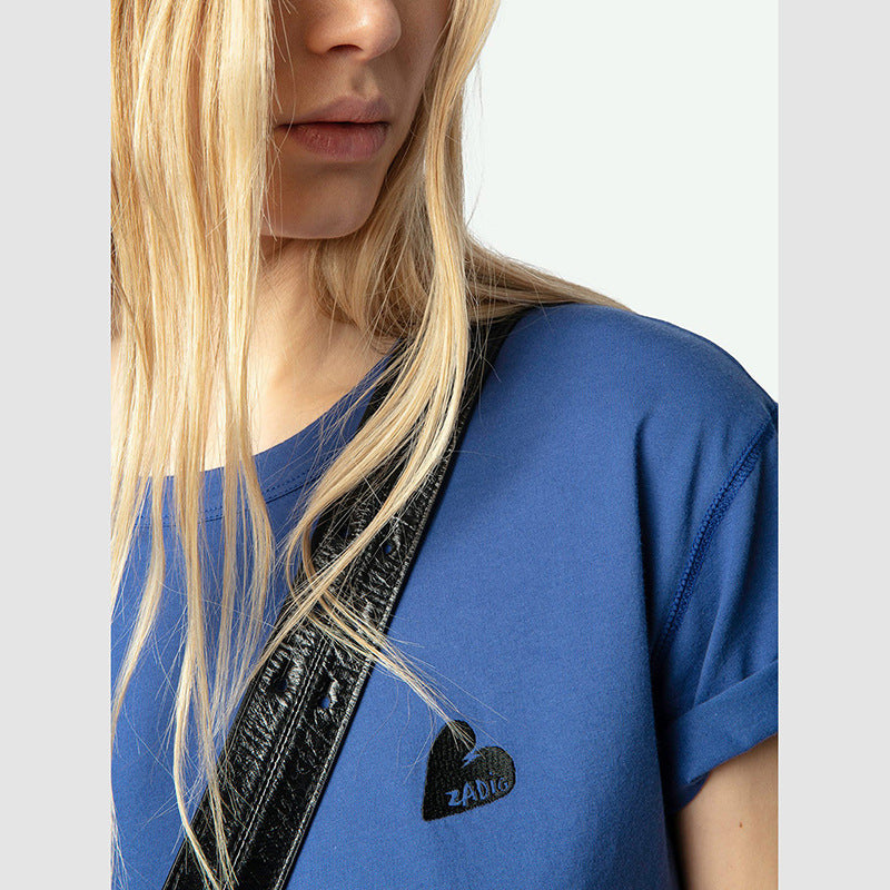 Women's Niche Love Letter Embroidery Cotton Split Round Blouses