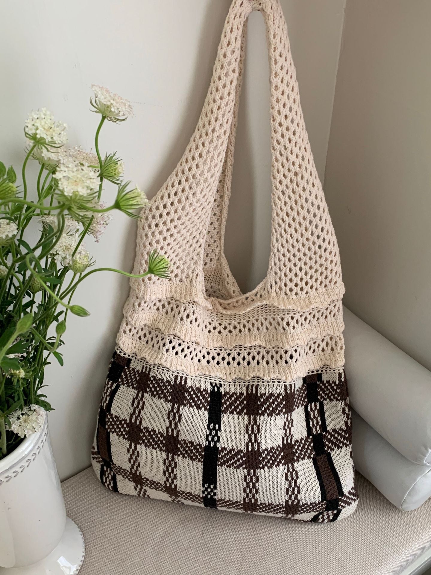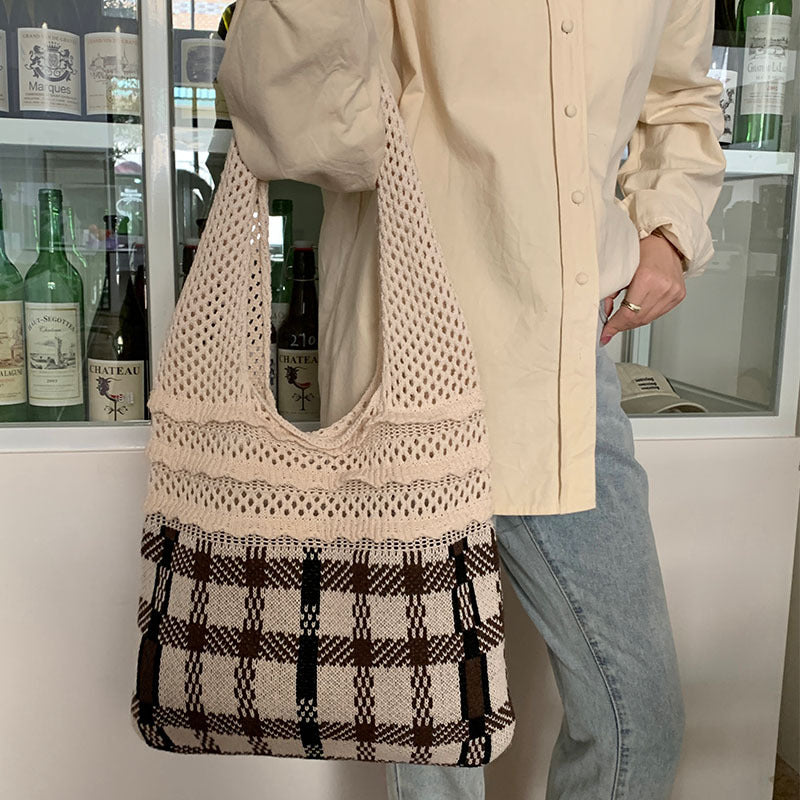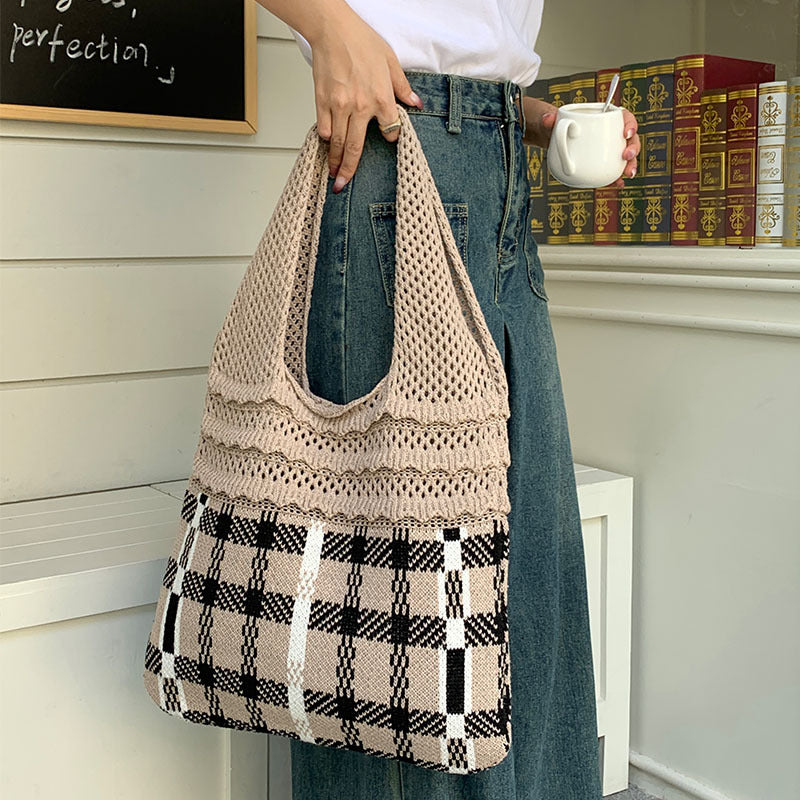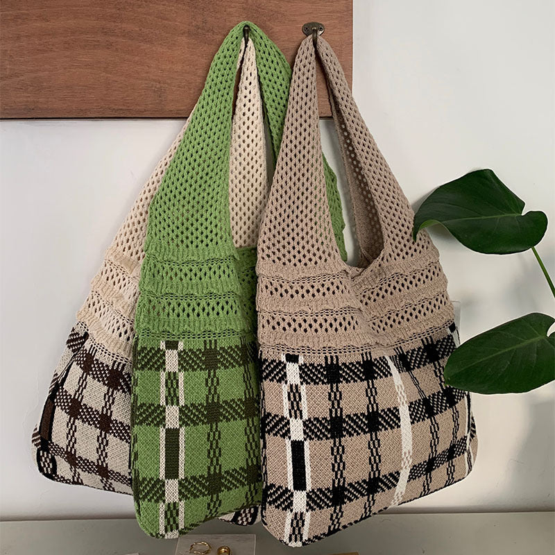 Women's Out Knitted Fashion Plaid Large Capacity Shoulder Bags