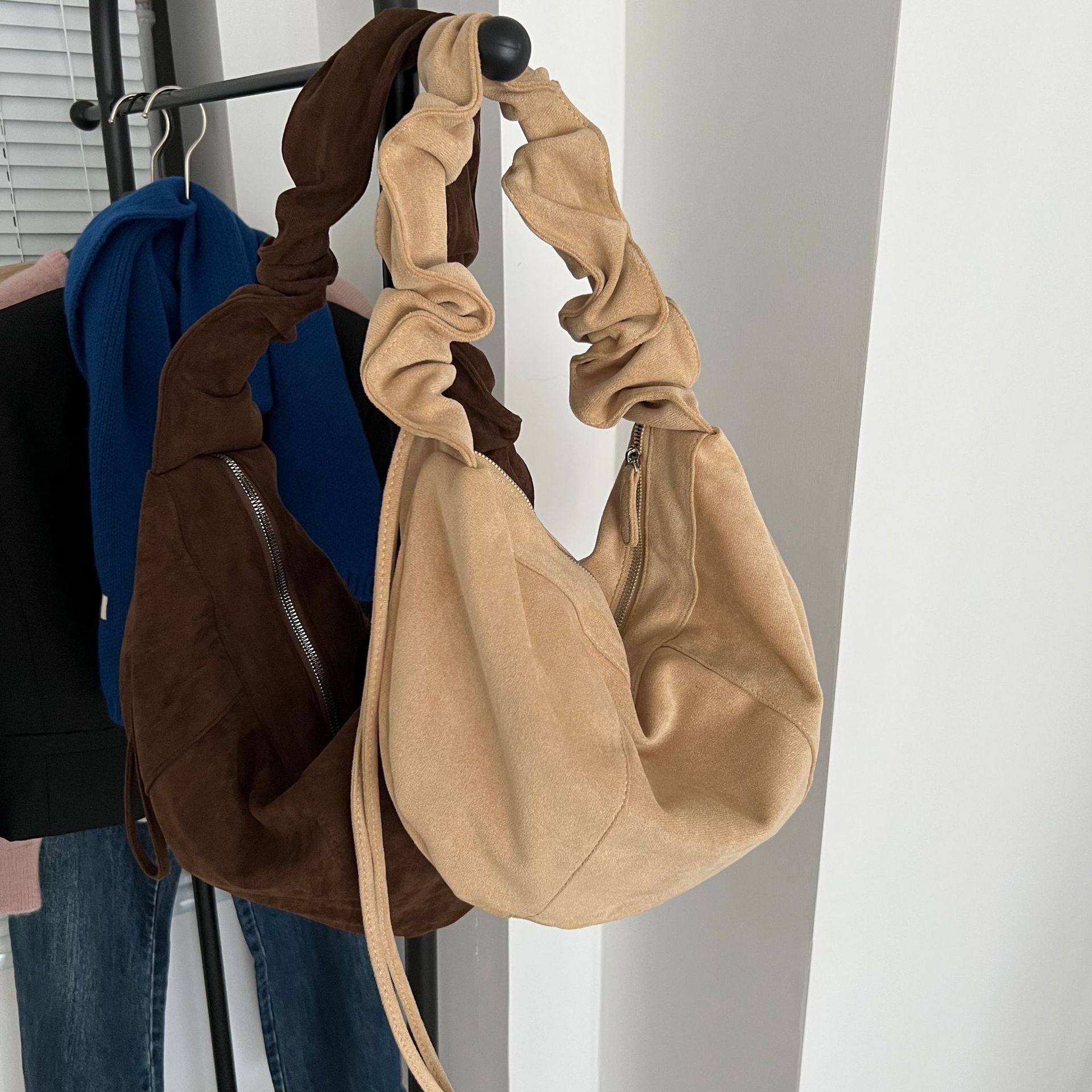 Women's Pleated Cloud Vintage Veet Dumpling Large Bags