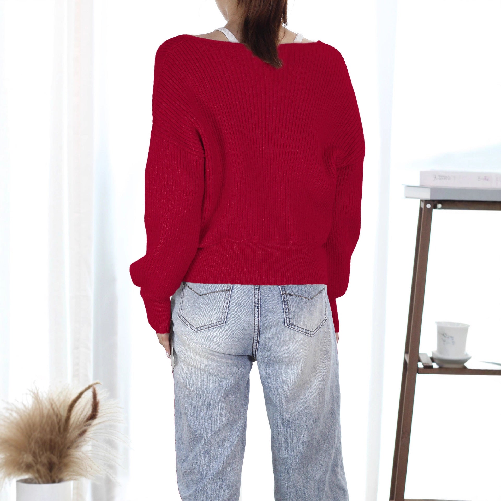 Women's Pullover Low-cut Sexy Idle Style Slim Knitwear