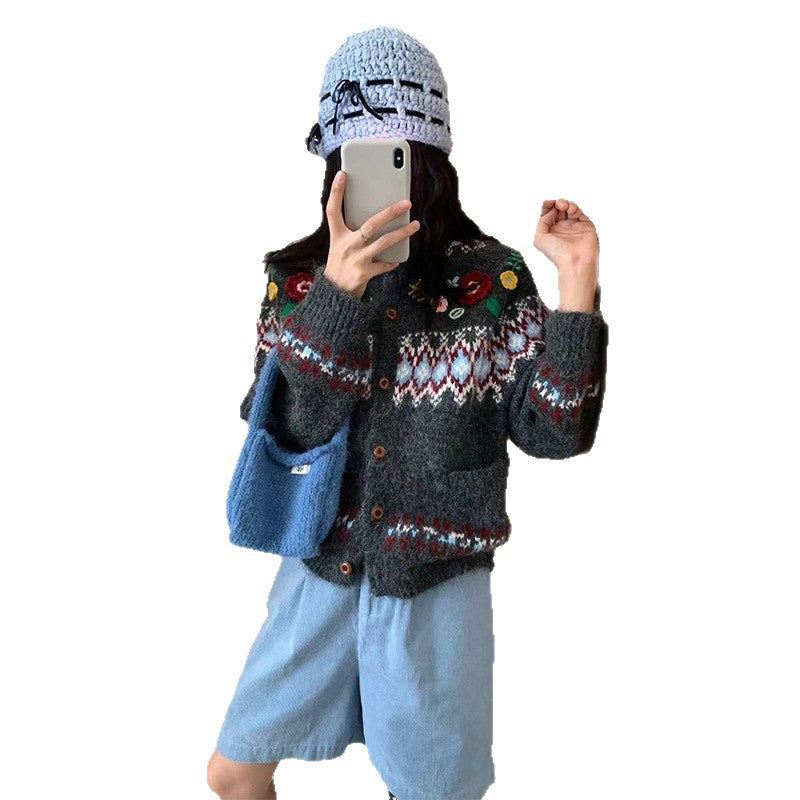 Women's Retro Three-dimensional Flower Fairland Younger College Knitwear