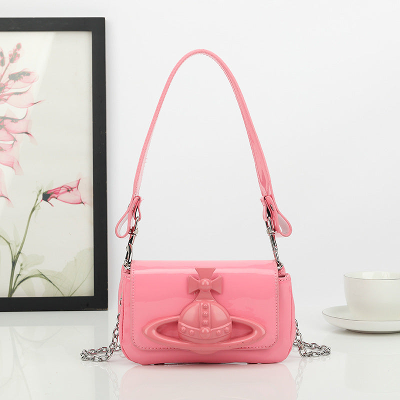 Women's Saturn Relief Underarm Queen Mother Baguette Small Square Bags