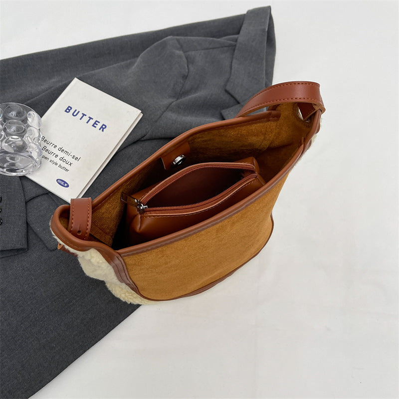 Women's Stylish Big Lamb Wool Plush Bucket Bags