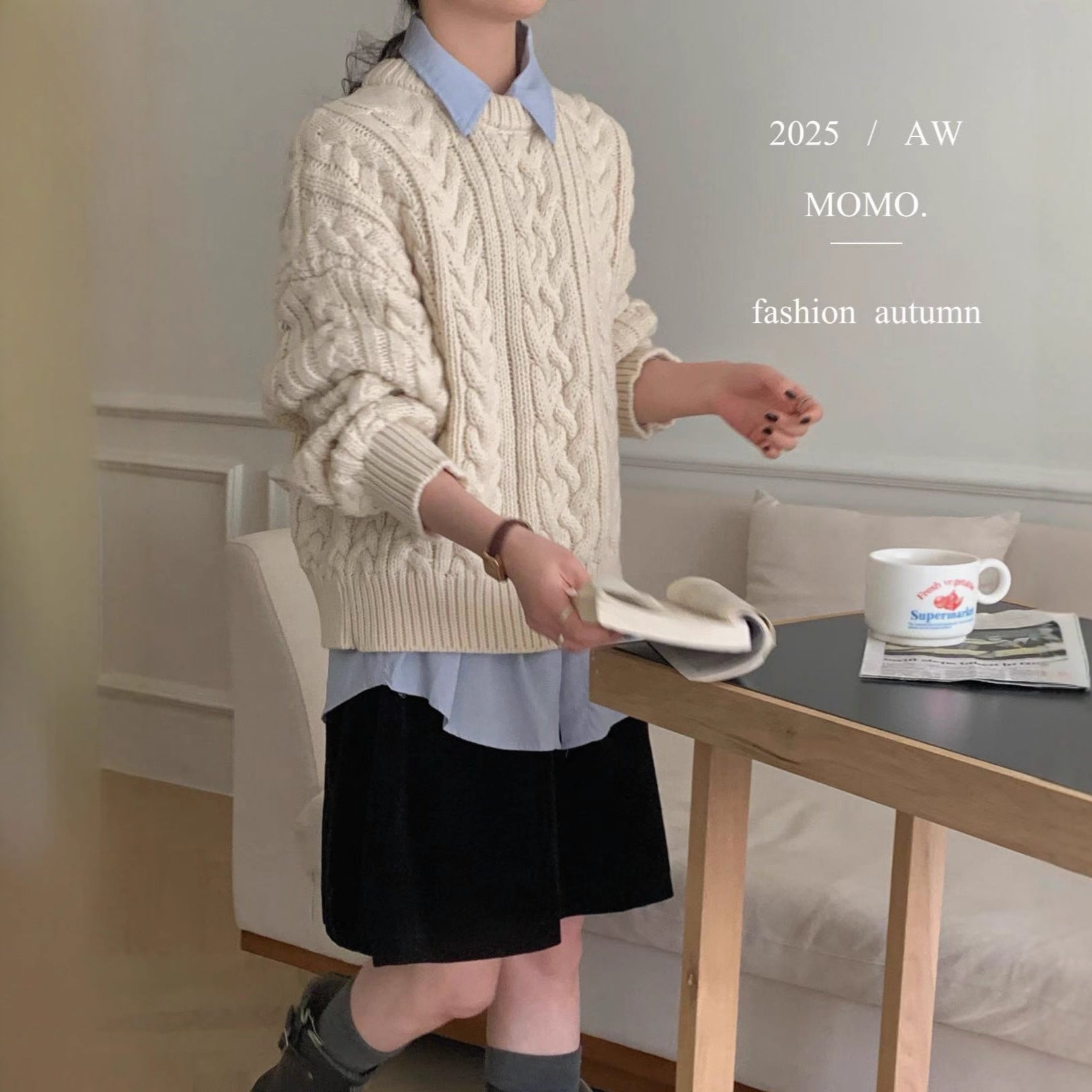 Women's Thick Twist Soft Glutinous Round Neck Needle Knitwear