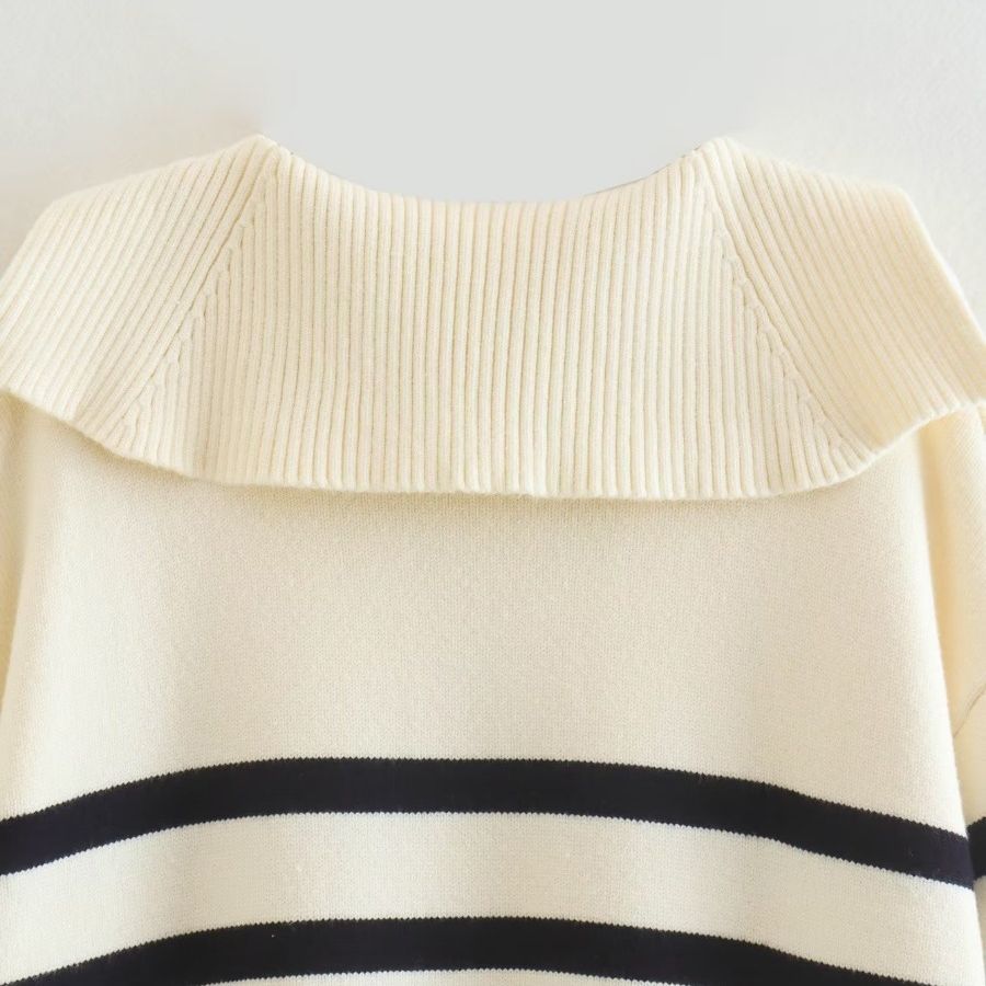 Women's V-shaped Polo Collar Stripes Loose Pullover Knitwear