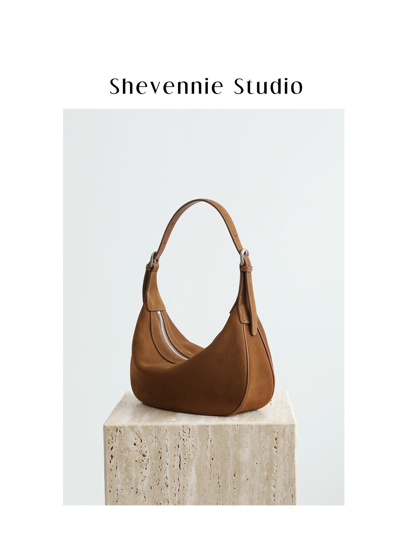 Women's Vintage Genuine Leather Crescent Hand-held Underarm Armpit Bags