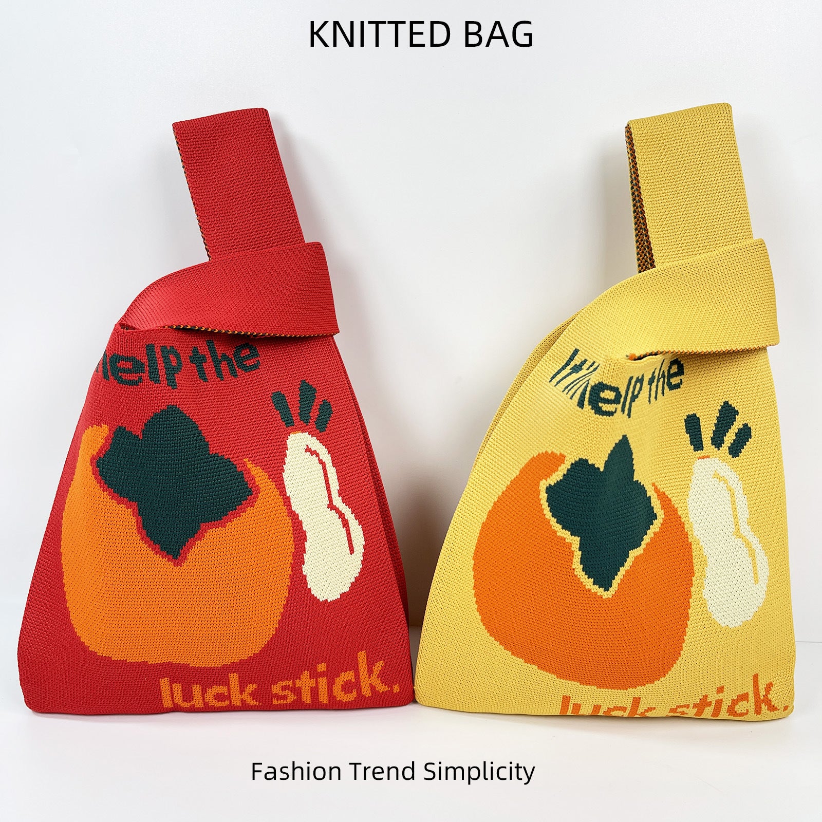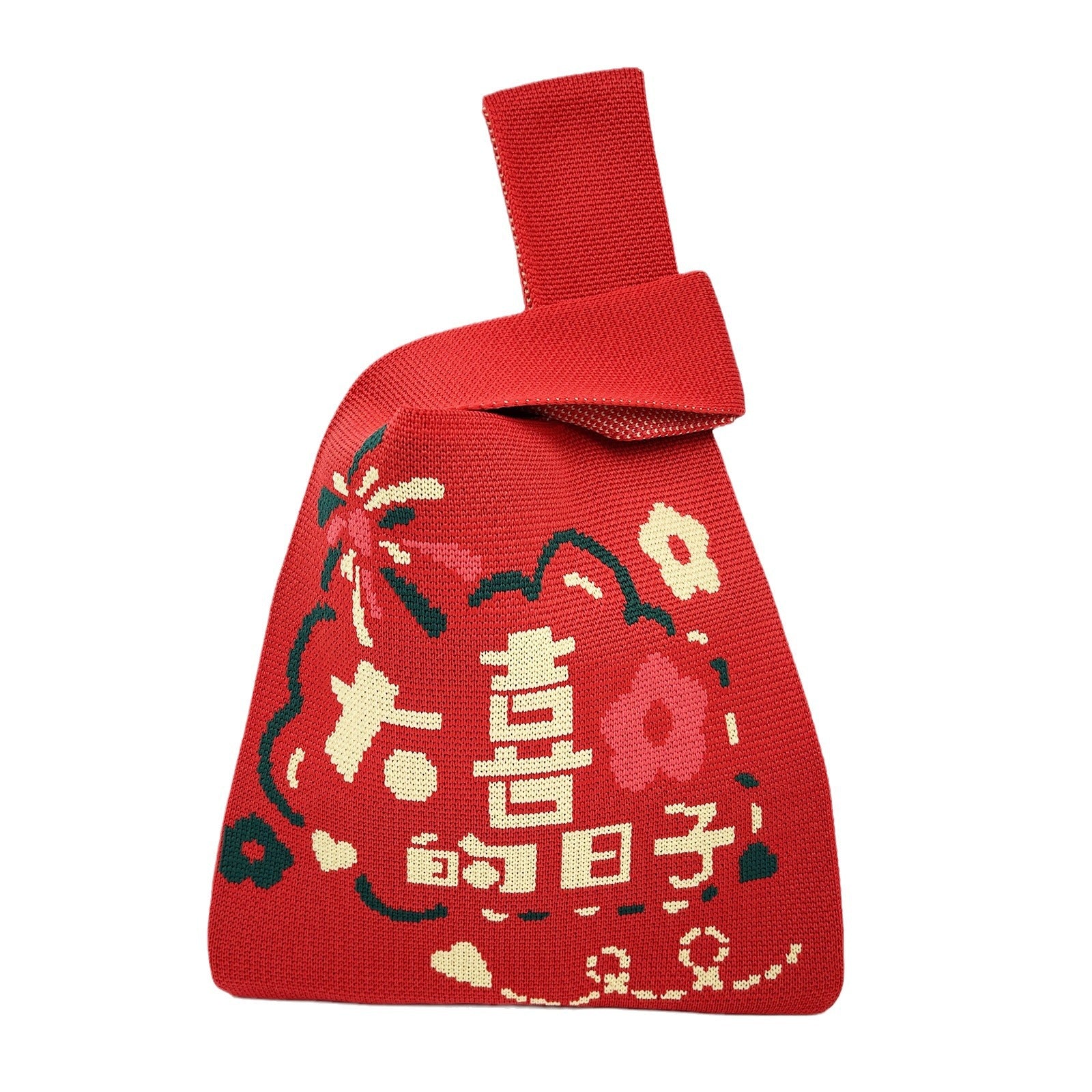 Women's Wedding Celebration Knitted Red Versatile Large Capacity Handbags
