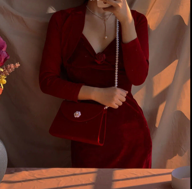 Women's Western Style Engagement Female Bride Veet Shoulder Bags