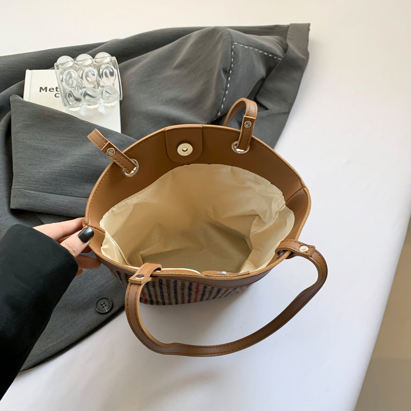 Women's Woolen Plaid Stitching Fashion Winter Commuter Handbags